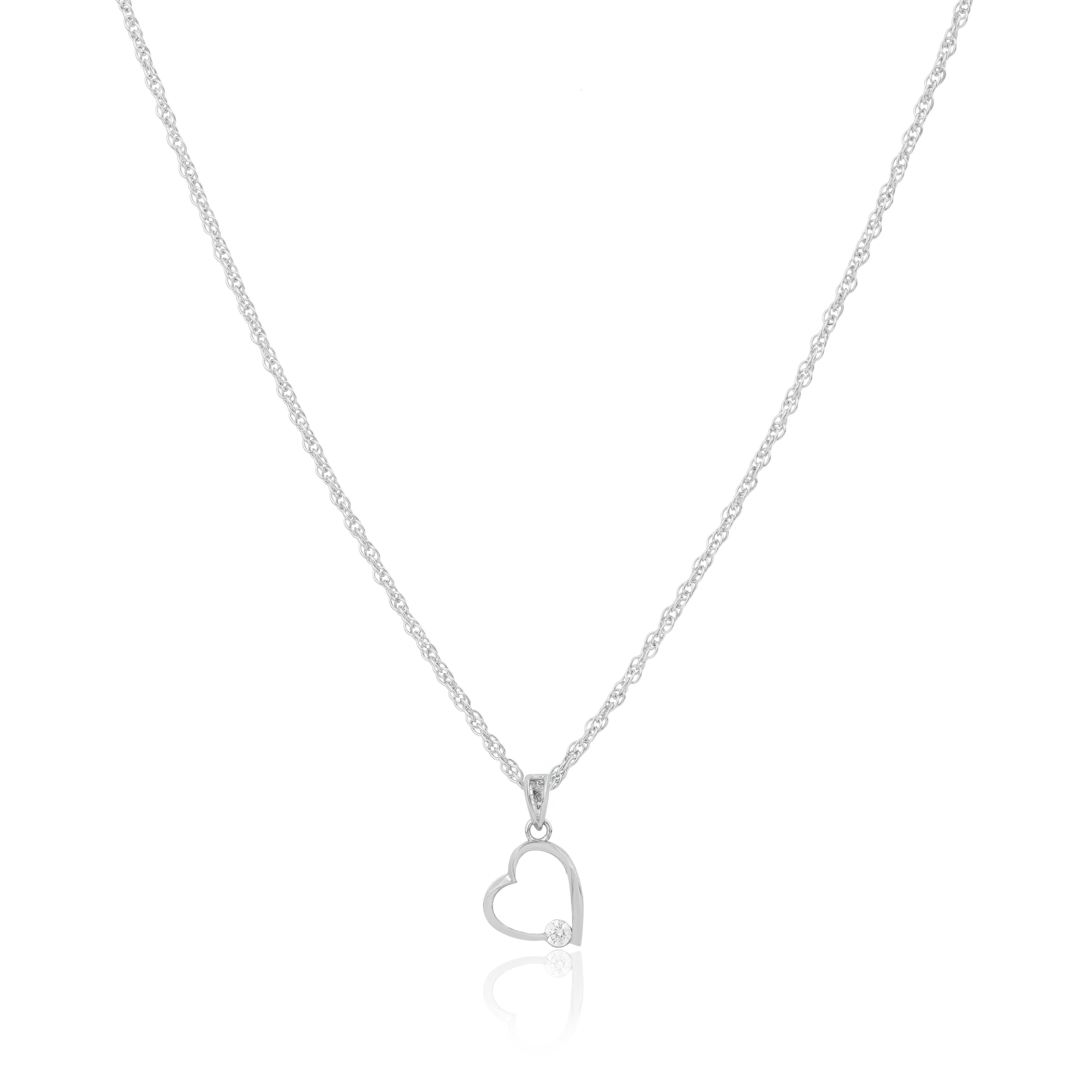 This piece of silver necklace features a drop- heart pendant design with a tiny zirconia stone on its edge.