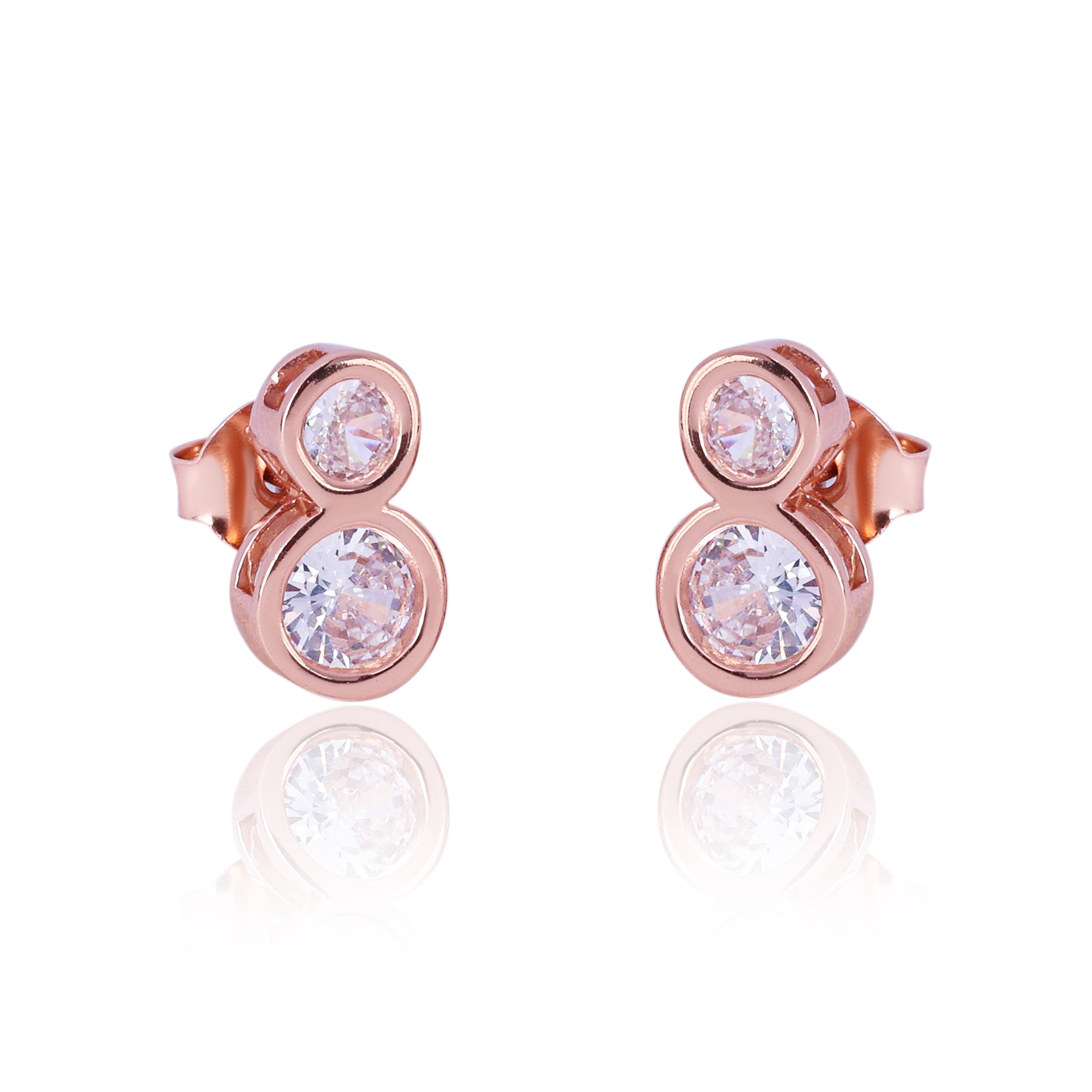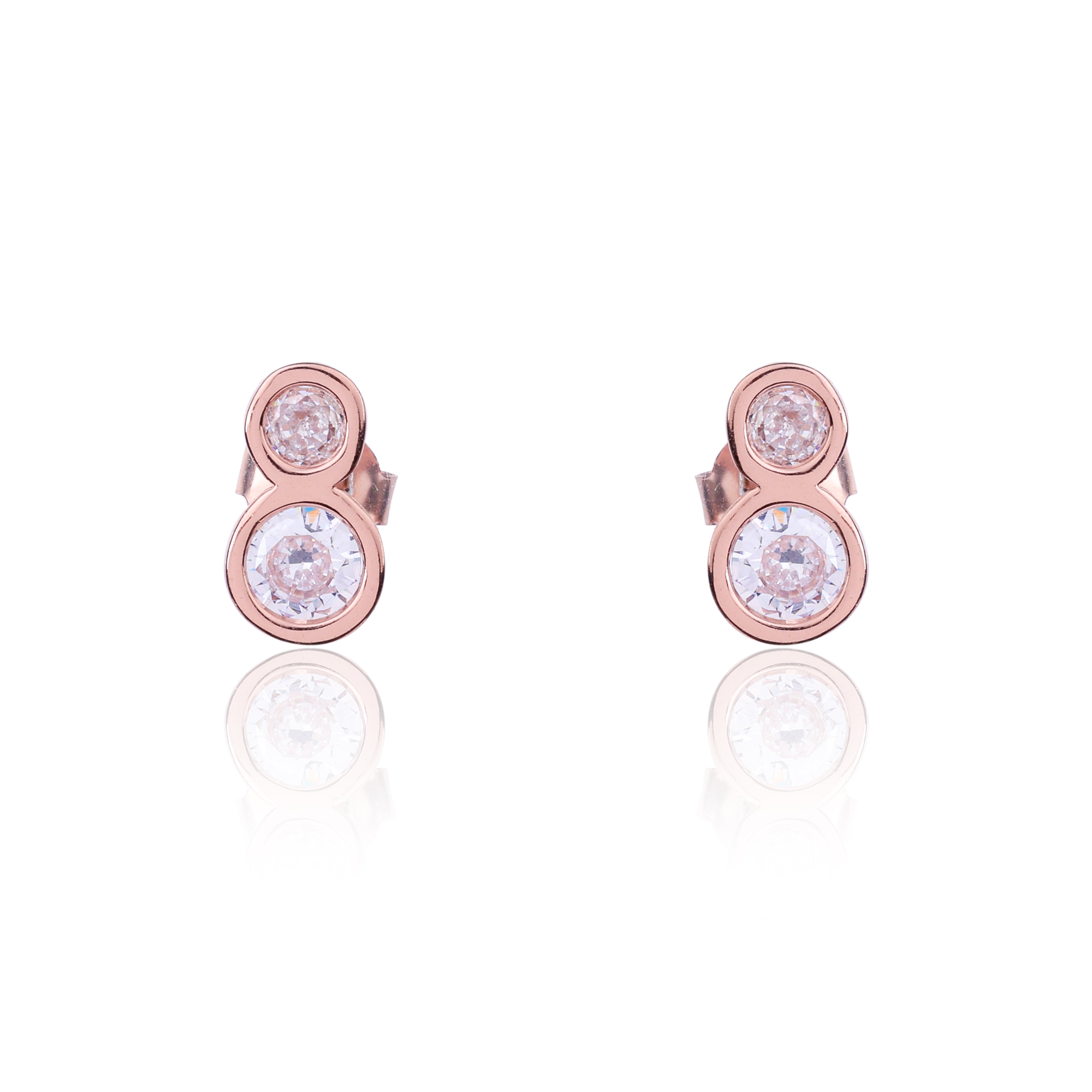 The rose gold silver earrings have two oval motifs joined together with oval zirconia in between.